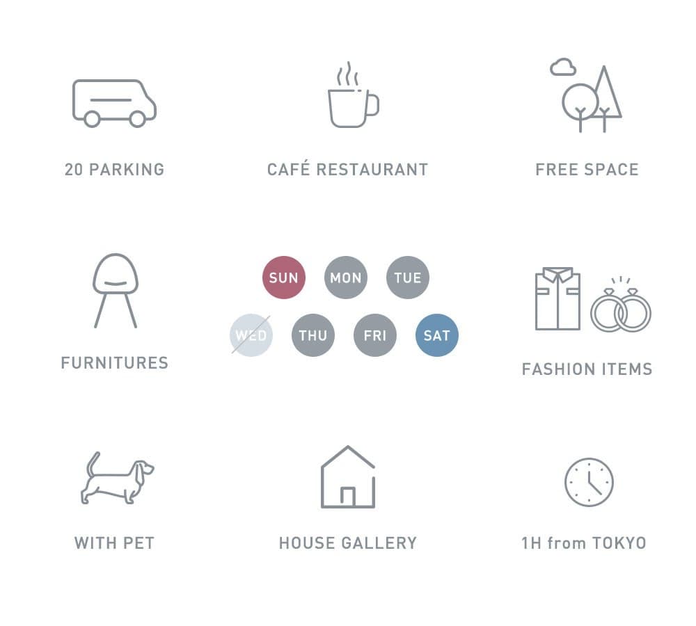 20台の駐車場を完備し、敷地内にお食事のできるカフェもあるため、ご家族やご友人とごゆっくりショッピングをお愉しみいただけます。